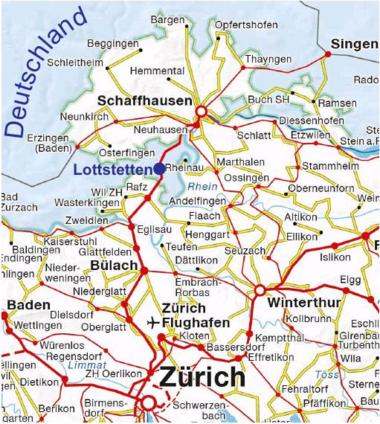 Lottstetten und Jestetten. In Jestetten ist die Bahnlinie schon zweigleisig ausgebaut